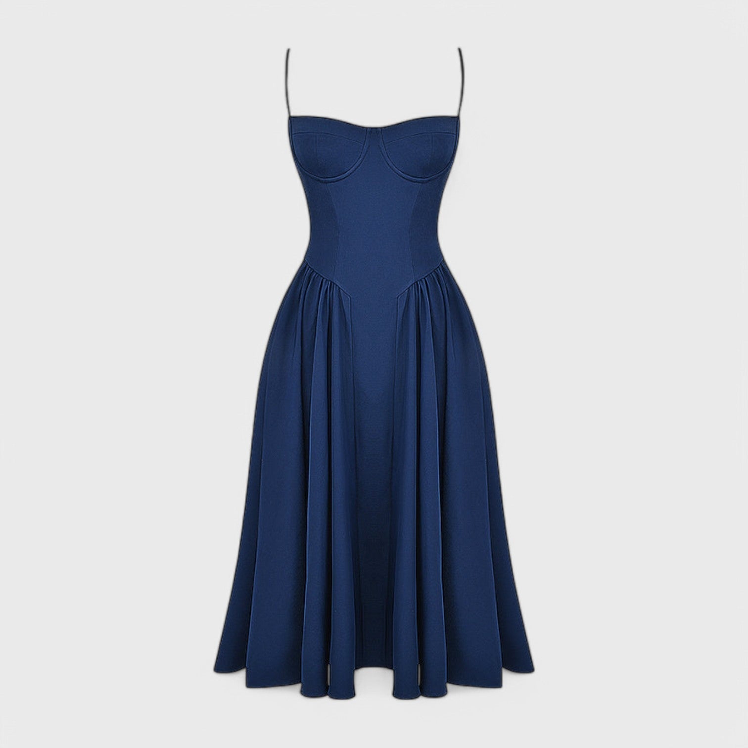 The Corset Dress features a structured, form-fitting silhouette with a defined bodice. Designed to follow the contours of the body, it includes a corset-style top for added shape and support. Suitable for a variety of settings, including formal events, evening outings, or social gatherings.